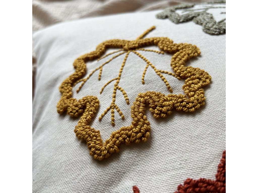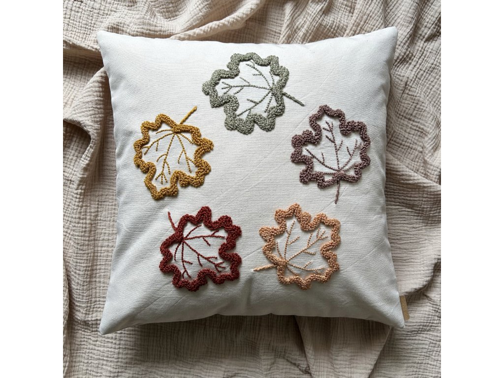 Vyšívaný polštářek s motivem věnce z javorových listů přinese do vašeho domova dotek podzimu. Můžete si vybrat z podzimních barev, které dodají interiéru teplou atmosféru, nebo zvolit elegantní jednobarevný.